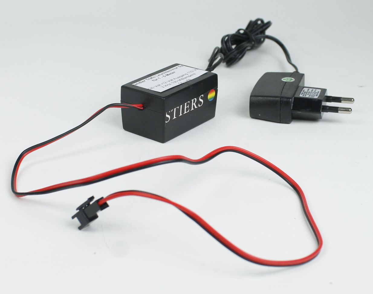 Ein Umwandler mit Trafo, Stecker Netzteil oder mit eingebautem Transformator ist nötig um die Leuchtschnur zum Leuchten zu bringen. Sehr geringer Stromverbrauch, pro Laufmeter ca. 0,3 Watt. Folgende drei Umwandler werden meistens eingesetzt: 1 bis 5 Meter, 2 bis 30 Meter, 5 bis 100 Meter, werden kpl. mit Stecker-Netzteil 230 Volt/12 Volt mit GS/CS, 1,2 Meter Kabel und Stecker sowie Umwandler geliefert. Ausgangsleistung 2000 Hz, 110 Vrms. Die Leuchtschnur einfach mit dem männlichen Mikro-Stecker verbinden. |