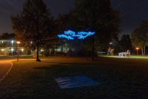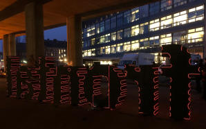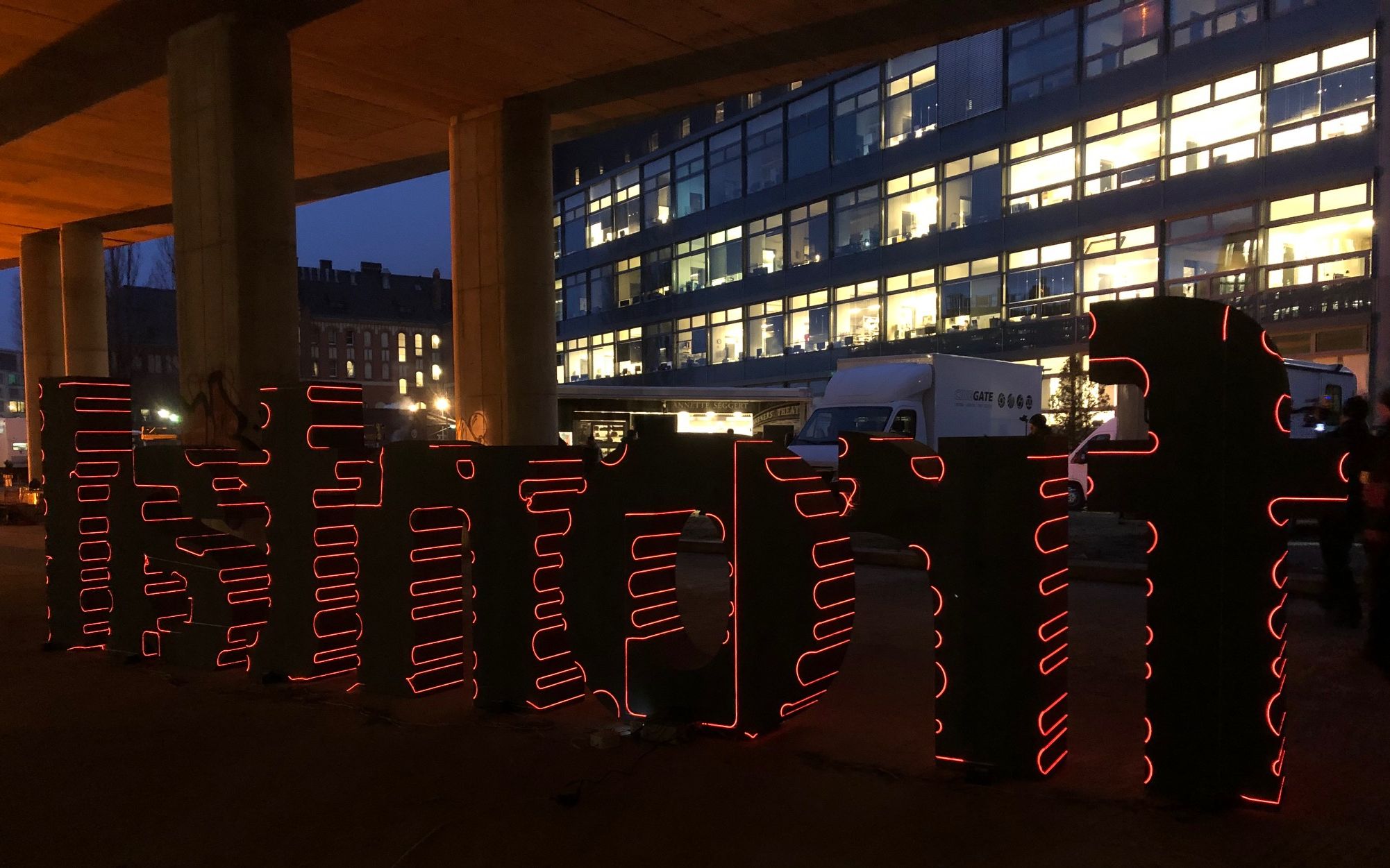 Die Logobuchstaben wurden mit Stiers Leuchtschnüren zum Leuchten gebracht.